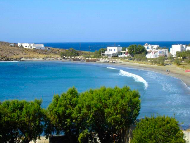 Three more beaches are accessible from the turn-off to the small settlement of Agios Romanos. Apigania beach is to the west and Panousa is to the southeast from Agios Romanos which has beach umbrellas, windsurfing and a small taverna. Kiona Beach is the longest and most developed